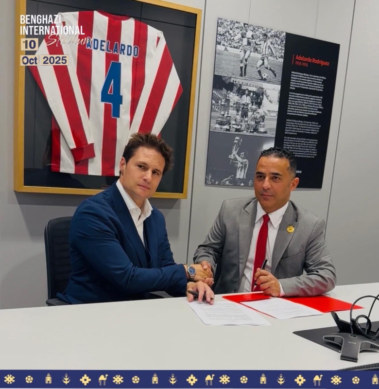 وجرى التوقيع الرسمي لهذا الحدث الكبير الأسبوع الفائت بتعليمات ومتابعة من المهندس بلقاسم خليفة حفتر، حيث وقّع الدكتور عقيلة العبار، مدير إدارة التعاون الدولي بالصندوق، اتفاقيتين رسميتين: الأولى في مدينة ميلانو مع الفريق الأول لنادي إنتر ميلان الإيطالي، والثانية في مدينة مدريد مع الفريق الأول لنادي أتلتيكو مدريد الإسباني، ما أتاح تأكيد مشاركة الفريقين في هذه المباراة التاريخية.