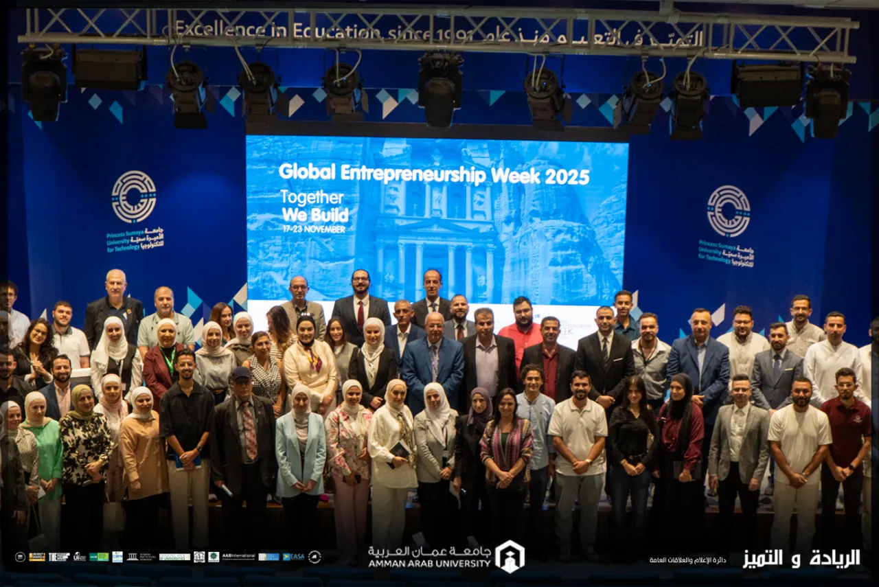 وبهذه المناسبة يدعو مركز الإبداع والابتكار وريادة الأعمال في جامعة عمان العربية طلبة الجامعة وأعضاء الهيئة التدريسية والإدارية إلى المشاركة في فعاليات أسبوع الريادة القادم في رحاب جامعة عمان العربية والذي سيكون من تاريخ 17/11/2025 – 23/11/2025، والتي تتضمن برامج وورشاً نوعية ومتميزة تهدف إلى تحفيز الإبداع وتعزيز روح الريادة ضمن بيئة جامعية داعمة للأفكار والمشروعات المبتكرة.