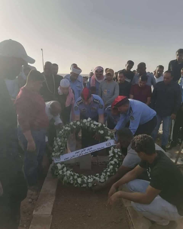 وشارك بتشييع الجثمان نائب مدير شرطة محافظة مادبا العقيد اسماعيل الفريحات والشرطة المجتمعية، وعدد من ضباط وضباط صف وأفراد مدير  الأمن العام من مختلف التشكيلات.