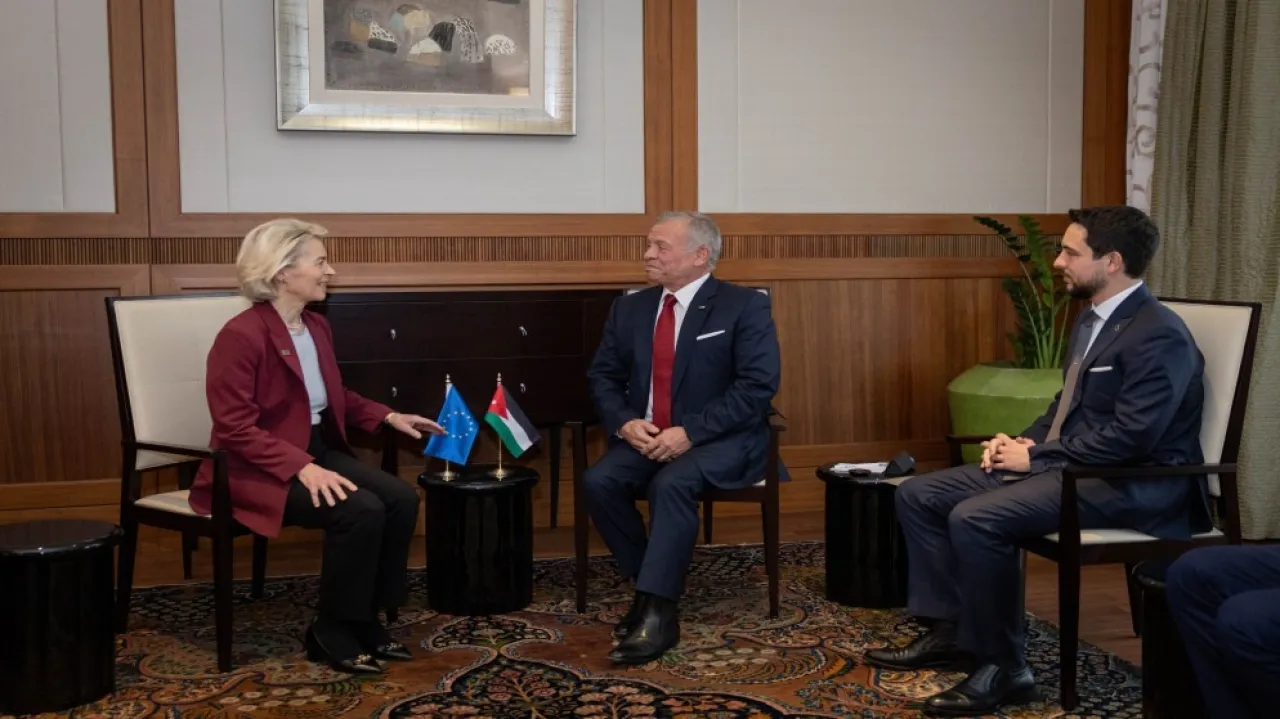 Khaberni - His Majesty King Abdullah II held two separate meetings in Slovenia on Monday with the President of the European Commission Ursula von der Leyen, and the Prime Minister of Greece Kyriakos Mitsotakis, on the sidelines of the Southern European Countries Summit "MED 9", attended by His Royal Highness Prince Al Hussein bin Abdullah II, the Crown Prince.