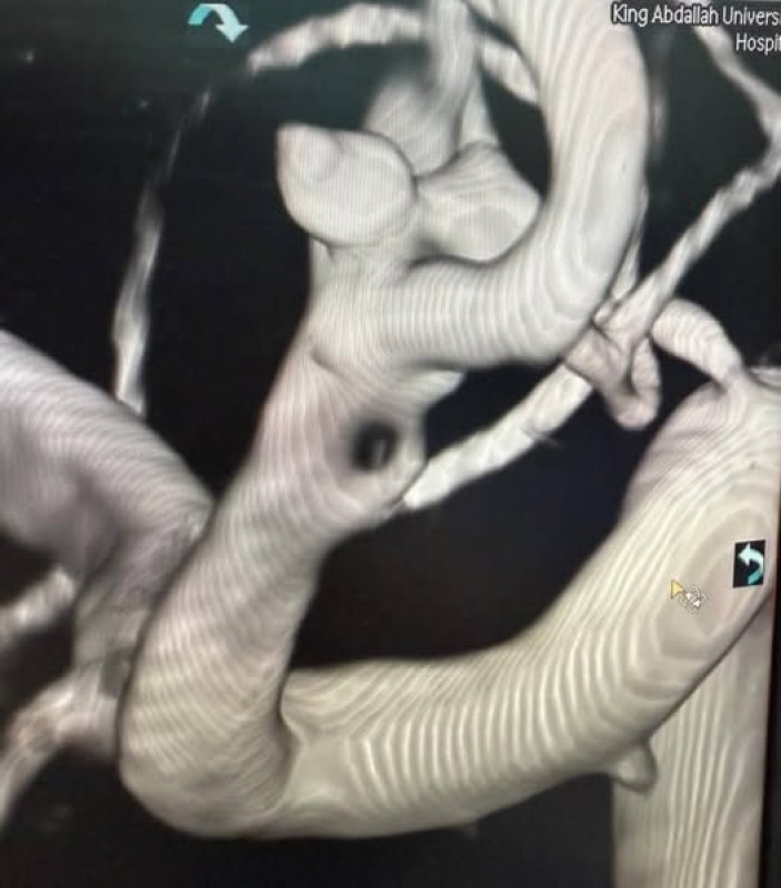 خبرني - تمكّن فريق طبي متخصص في مستشفى الملك المؤسس عبدالله الجامعي من إنقاذ حياة مريض يبلغ من العمر 57 عامًا، كان يعاني من نزيف دماغي حاد ناتج عن انفجار أمّ الدم في الشريان السباتي الداخلي وتفرع الشريان الدماغي الأمامي مع الأوسط .