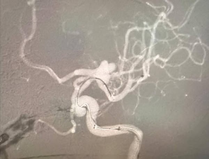 وخلال العملية، تم تركيب شبكة دقيقة بين الشريان الدماغي الأوسط والشريان السباتي الداخلي، ما ساعد على تحويل مسار الدم بعيدًا عن الكيس الدموي المنفجر، وبالتالي وقف النزيف بشكل كامل .