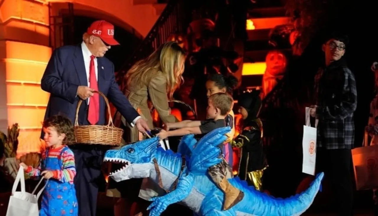 In a related context, the celebration lasted more than an hour, involving children of White House staff and several invited families, where Trump and Melania distributed chocolate bars to children dressed in various costumes including astronauts, restaurant workers, and cartoon characters.