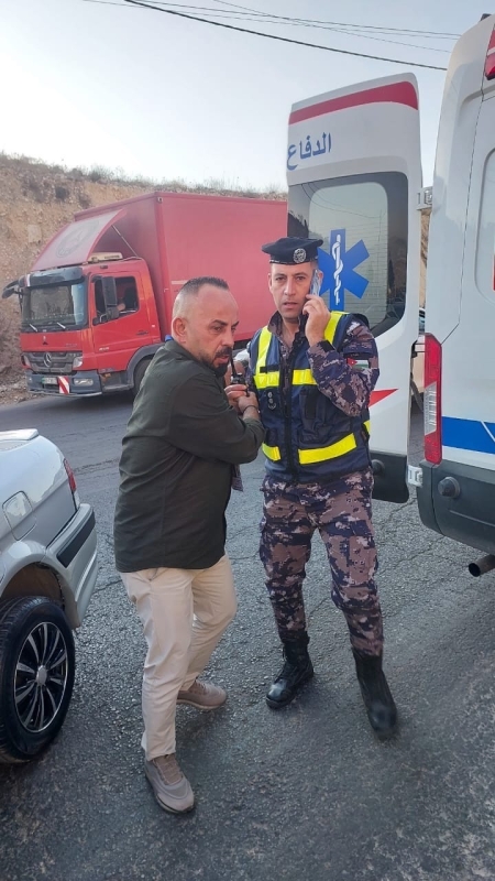 وتزامن الحادث مع مرور مدير مركز صحي عين الباشا الدكتور عاصم غنيمات، الذي بادر بتقديم الإسعافات الأولية للمصابين في موقع الحادث، قبل أن يوجه الكوادر الطبية والإسعاف إلى نقل المصابين بشكل عاجل إلى المستشفى.