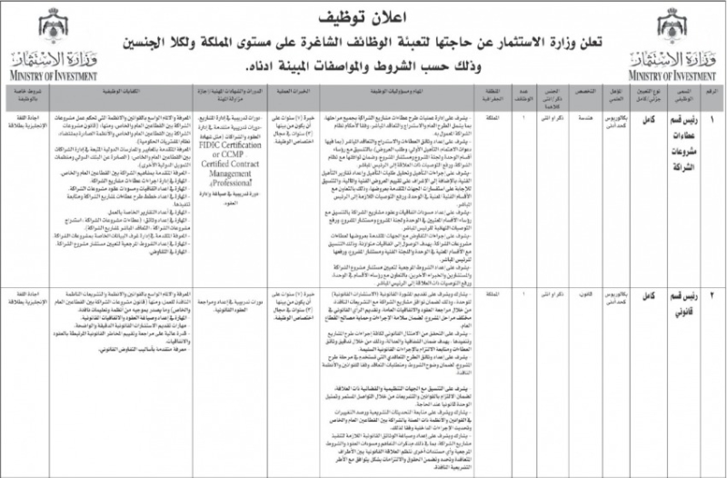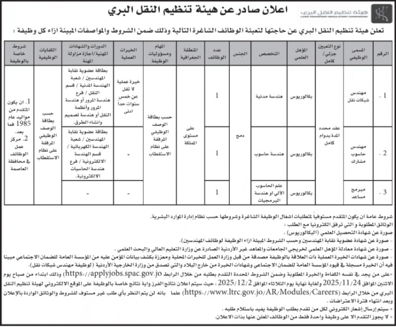 خبرني - أعلنت مؤسسات حكومية اليوم الأحد، عن وظائف شاغرة ضمن شروط معينة.