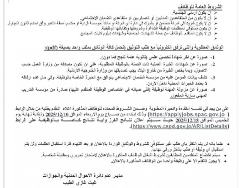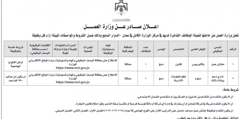 خبرني - أعلنت دوائر في القطاع الحكومي حاجتها لتعيين أشخاص لملئ شواغر في وزارة العمل ودائرة الأحوال المدنية والجوازات.