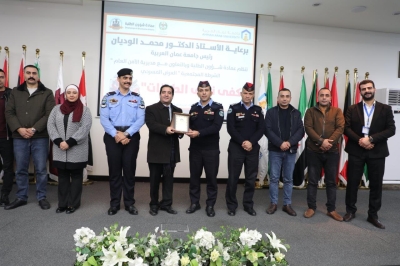 وتأتي هذه الفعالية ضمن جهود جامعة عمان العربية لتعزيز المسؤولية المجتمعية لدى الطلبة والمجتمع المحلي، ودعم المبادرات التوعوية الهادفة، وترسيخ دور الجامعة كشريك فاعل مع المؤسسات الوطنية في نشر الثقافة الأمنية والسلامة المرورية، وفي ختام الفعالية كرم الدكتور بن طريف الشرطة المجتمعية التابعة لمحافظة البلقاء والفريق المسرحي تقديراً لجهودهم وتعاونهم المستمر مع الجامعة.