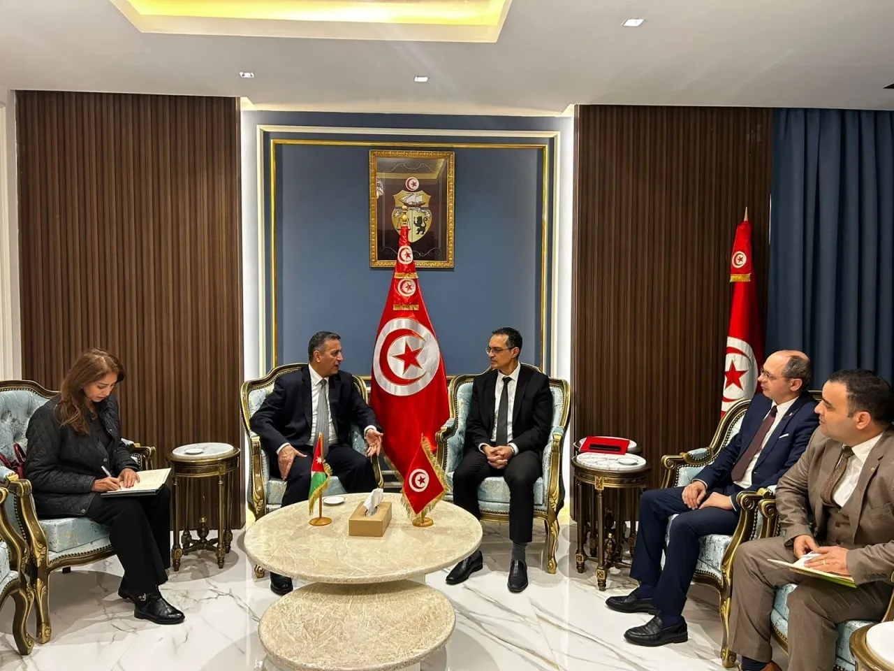 Today, Friday, December 26, 2025, the Tunisian Minister of Agriculture, Water Resources, and Fisheries, Azzedine Ben Sheikh, welcomed the Ambassador of the Hashemite Kingdom of Jordan to Tunisia, Abdullah Abu Romman, where discussions were held on ways to enhance bilateral cooperation between the two countries in the agricultural field.