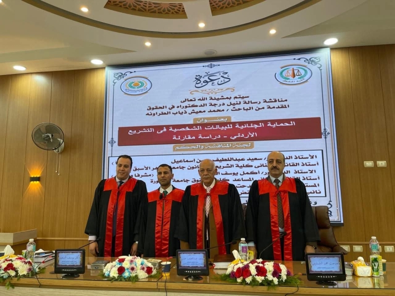 بمناقشة اطروحة الدكتورة في القانون الجنائي من جمهورية مصر العربية بدرجة الامتياز مع مرتبة الشرف