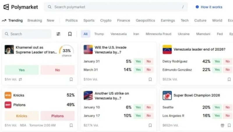 قبل ساعات من تنفيذ العملية الأمريكية السرية في فنزويلا، حقق متداول مجهول على منصة Polymarket المُتخصصة في المراهنات على الأحداث المستقبلية ربحا يقارب 410000 دولار من رهانات بلغت قيمتها نحو 34000 دولار، راهن خلالها على الإطاحة بمادورو بحلول نهاية العام الماضي.