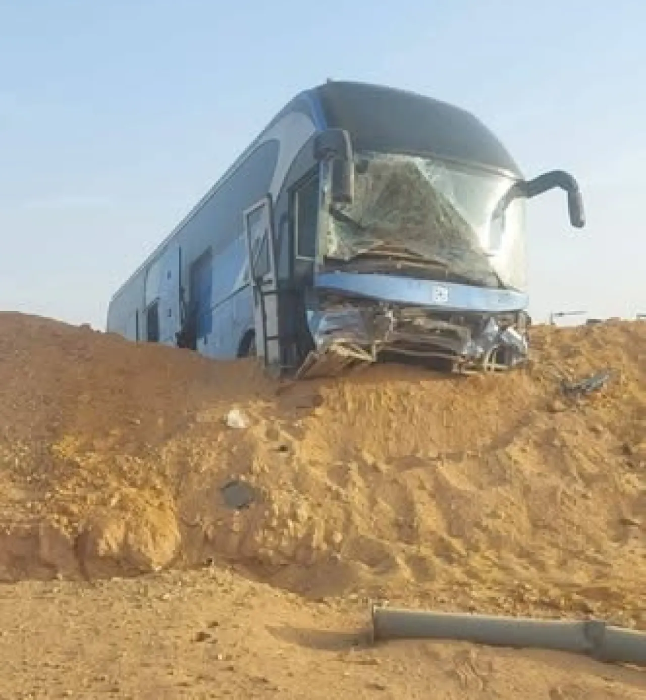 خبرني - وقع حادث سير ذاتي لحافلة معتمرين أردنيين على الطريق الصحراوي - السعودية.