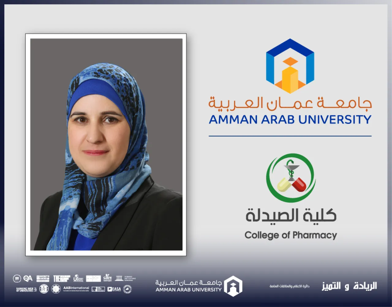 بدورها أكدت الأستاذ الدكتورة رنا أبو حويج عميد كلية الصيدلة في جامعة عمان العربية أن مشاركة كوادرها في الأيام العلمية والفعاليات المتخصصة تنسجم مع رؤية جامعة عمان العربية في دعم التميز الأكاديمي وتعزيز التكامل بين الجانبين النظري والتطبيقي، كما بيّنت أن هذه المشاركات تسهم في تطوير الكفاءات العلمية، ومواكبة المستجدات في مجالات الصحة والسلامة وإدارة المواد الكيميائية الخطرة، بما ينعكس إيجاباً على العملية التعليمية ويعزز دور الجامعة في خدمة المجتمع وتحقيق بيئة عمل آمنة ومستدامة.