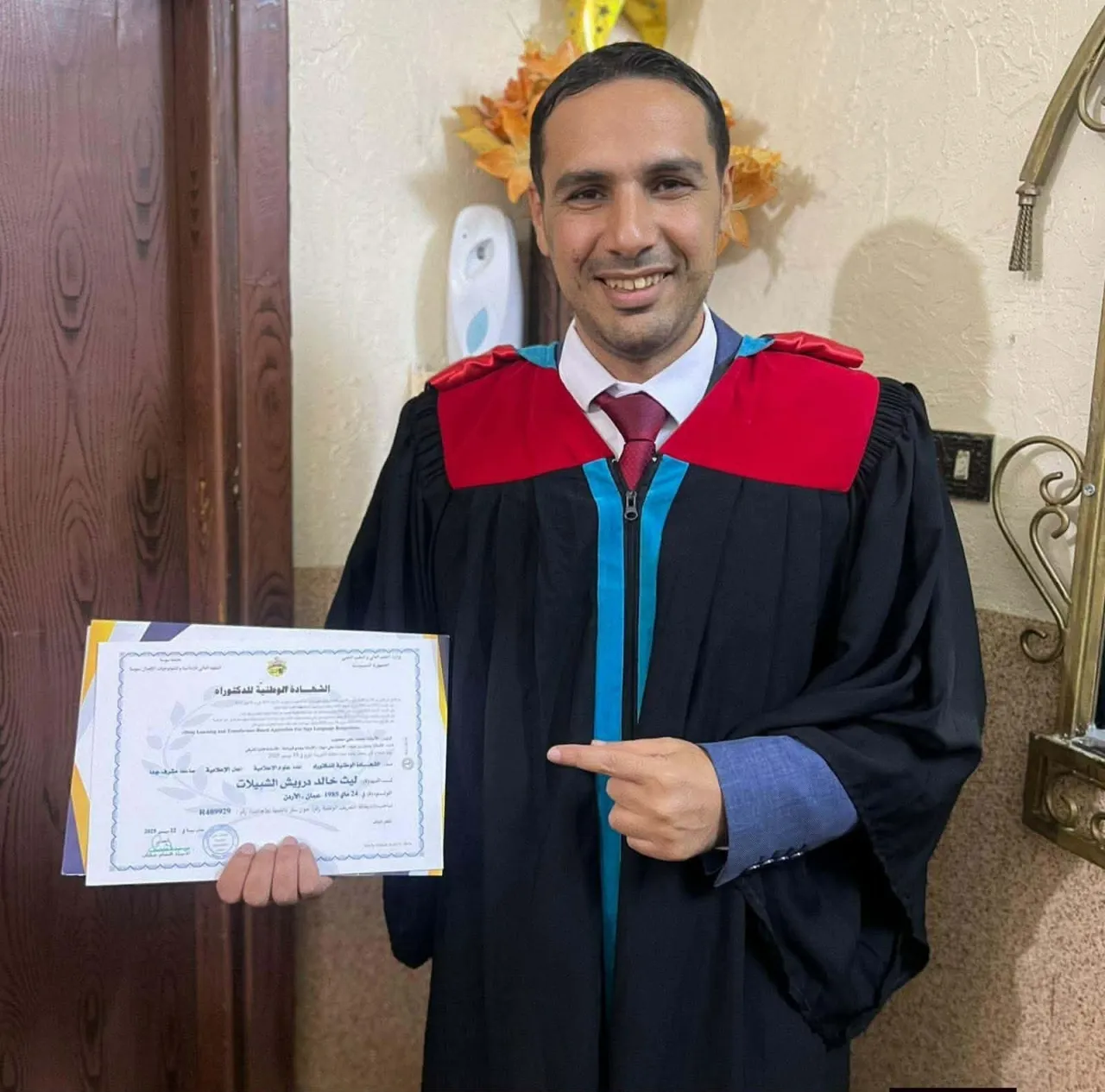 خبرني - الأهل والأصدقاء يتقدمون بأسمى آيات التهنئة والتبريك من الدكتور رائد جمرك ليث خالد الشبيلات مناقشة أطروحة الدكتوراه في تخصص (علوم الحاسوب - التخصص الدقيق الذكاء الاصطناعي) بتقدير امتياز