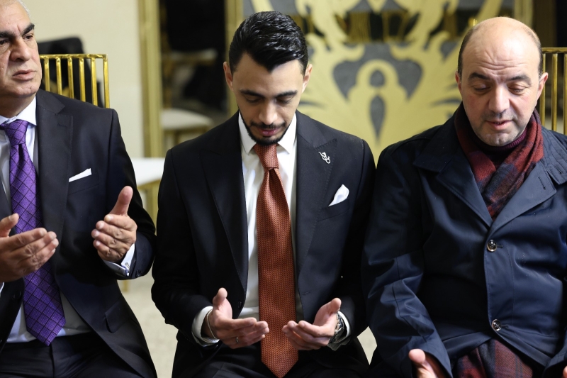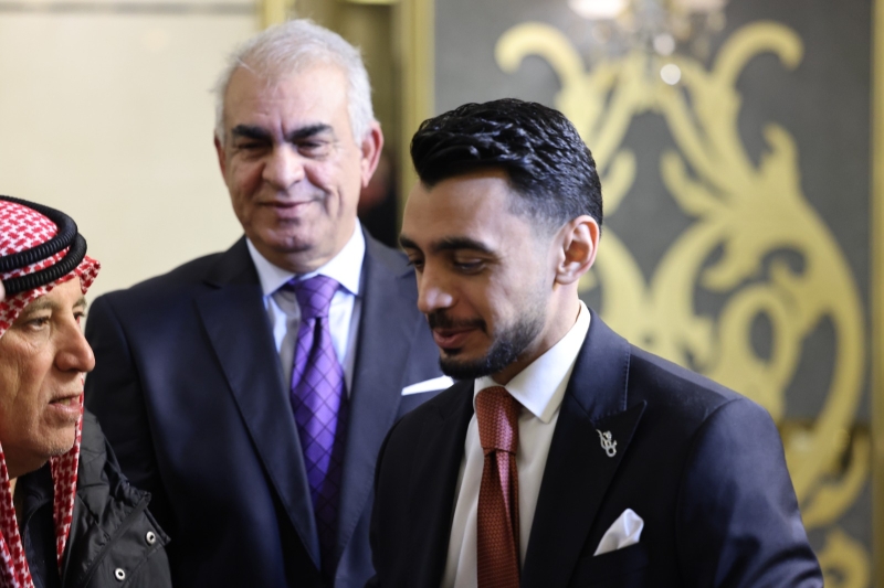 وتقدم بالطلب باسم الجاهة رئيس غرفتي صناعة عمان والأردن المهندس فتحي الجغبير، فيما أجاب بالقبول عن آل جابر الدكتور أسامة هاشم جابر.