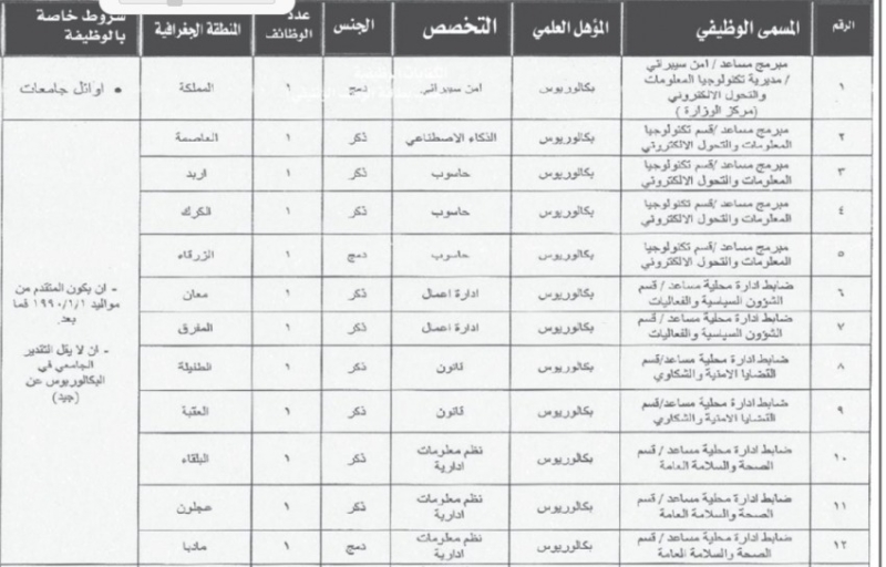 خبرني - أعلنت عدد من الوزارات والدوائر الحكومية اليوم الإثنين عن حاجتها لتعبئة شواغر وظيفية لديها.
