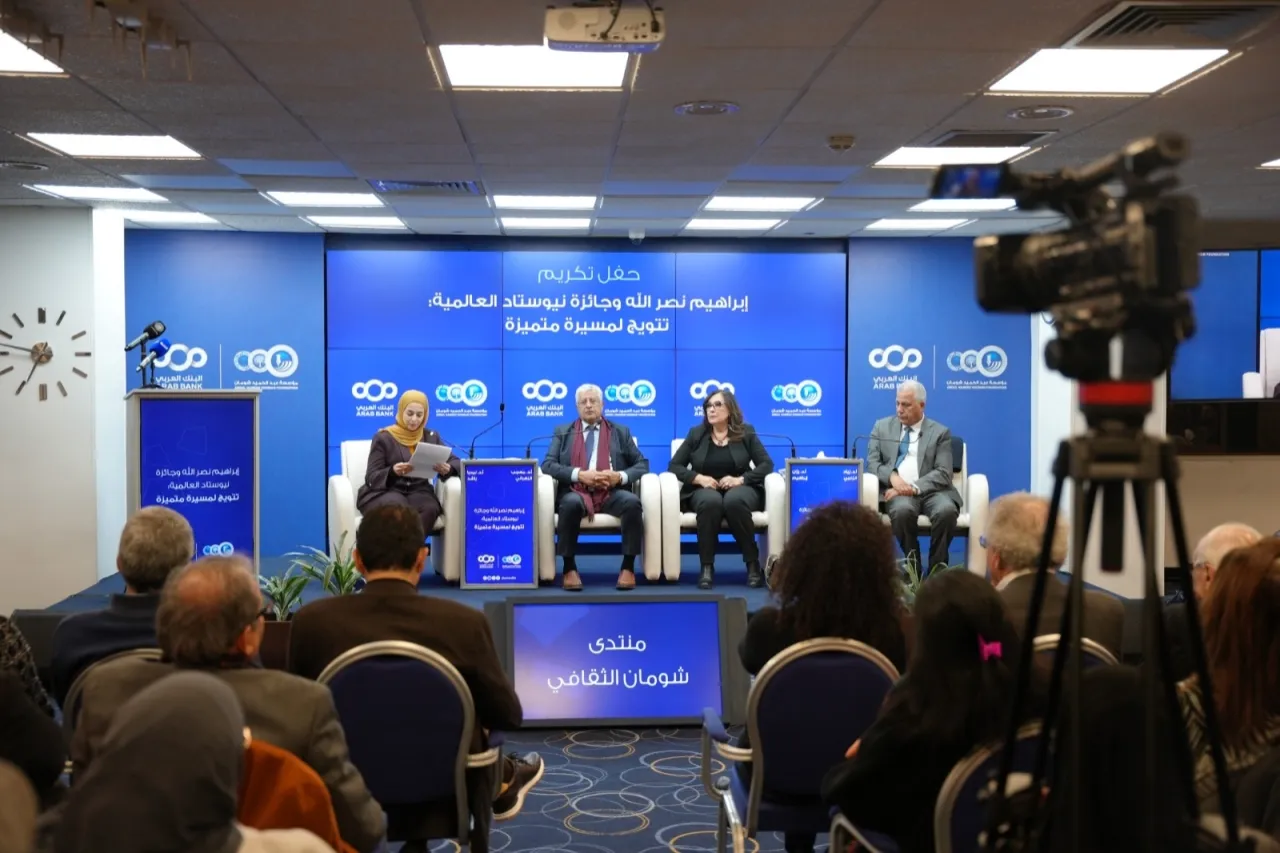 خبرني  -  احتفت مؤسسة عبد الحميد شومان، مساء أمس، بالشاعر والروائي إبراهيم نصر الله، بفوزه بجائزة "نيوستاد" الدولية للأدب، بحضور نخبة من الأدباء والأكاديميين والمدعوين.
