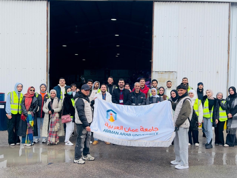 خبرني - في إطار حرص جامعة عمان العربية على ترسيخ قيم العمل التطوعي والمسؤولية المجتمعية لدى طلبتها نظمت عمادة شؤون الطلبة/ قسم الإرشاد الطلابي وبالتعاون مع كلية الأعمال في الجامعة زيارة ميدانية إلى الهيئة الخيرية الأردنية الهاشمية – بنك الملابس، بمشاركة طلبة نادي العمل التطوعي من مختلف كليات الجامعة.