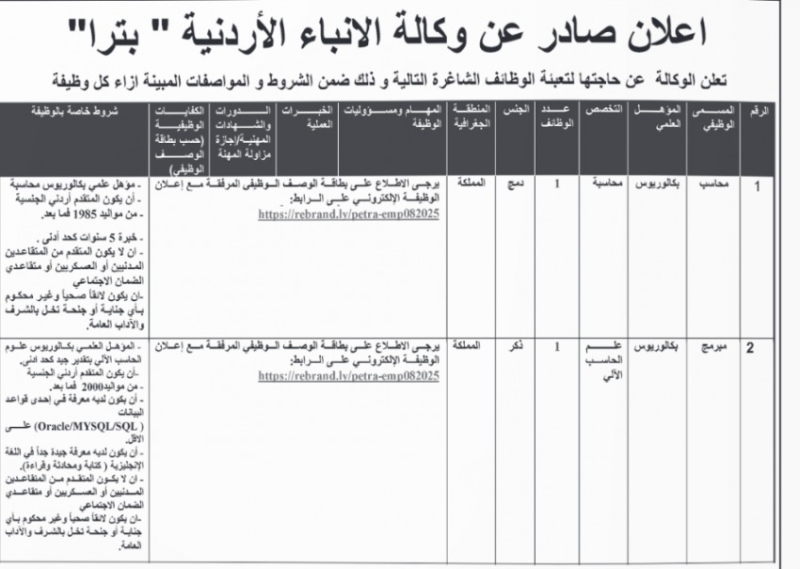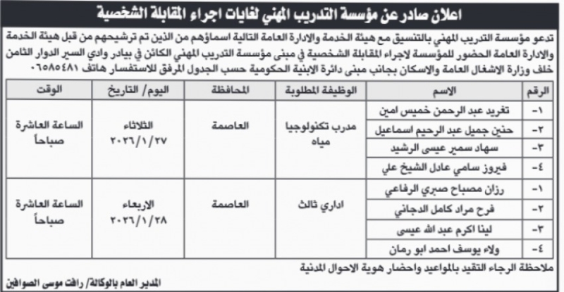 خبرني - أعلنت عدد من الوزارات والمؤسسات الحكومية عن حاجتها لملء شواغر وظيفية في حين أعلنت مؤسسات أخرى عددًا من مجتازي الامتحانات التنافسية إلى إجاء المقابلات الشخصية.