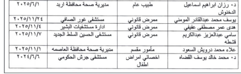 كذلك فقد أعلنت وزارة الصحة أسماء عدد من الموظفين الذين فقدوا وظائفهم لدى الوزارة.