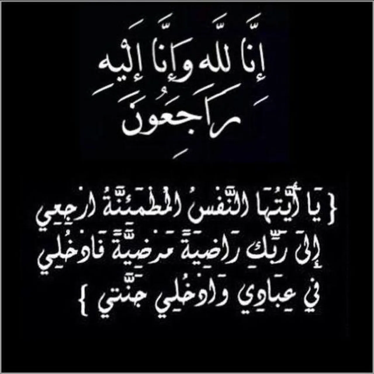 خبرني - (( يَا أَيَّتُهَا النَّفْسُ الْمُطْمَئِنَّةُ ارْجِعِي إِلَى رَبِّكِ رَاضِيَةً مَرْضِيَّةً فَادْخُلِي فِي عِبَادِي وَادْخُلِي جَنَّتِي ))، ببالغ الحزن والاسى وبقلوب مؤمنة بقضاء الله وقدره