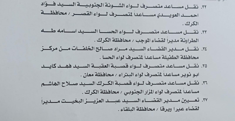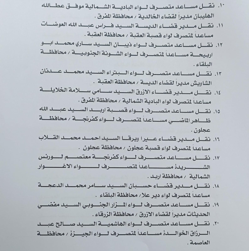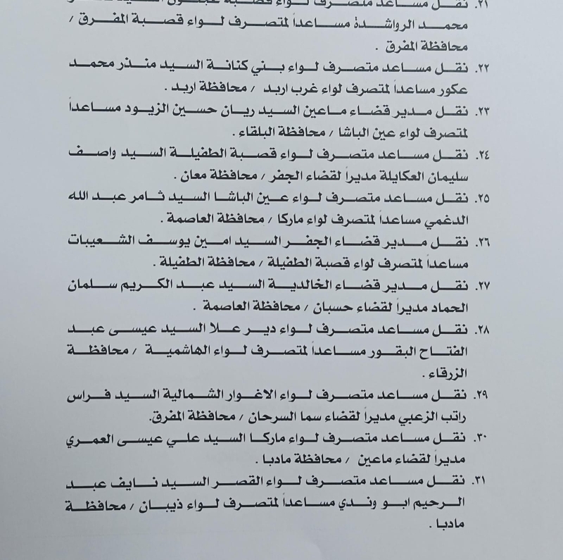 خبرني - أصدر وزير الداخلية، قرارا يقضي بإجراء تشكيلات إدارية واسعة شملت عددا كبيرا من الحكام الإداريين في مختلف محافظات المملكة.