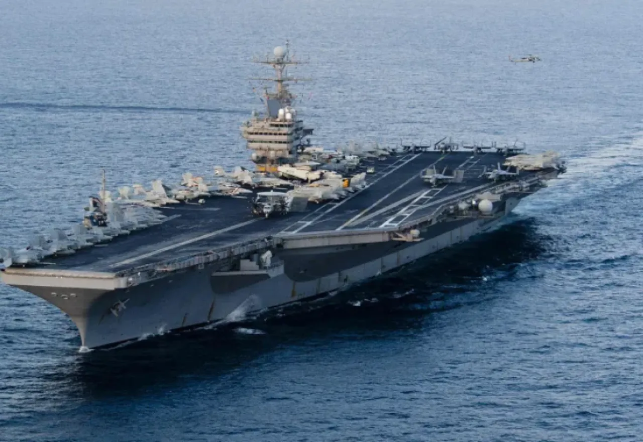 The aircraft carrier group includes about 5,000 sailors and marines, along with squadrons of jet fighters, helicopters, and electronic attack aircraft, according to the "CBS" newspaper.