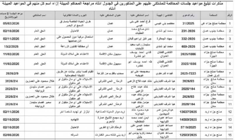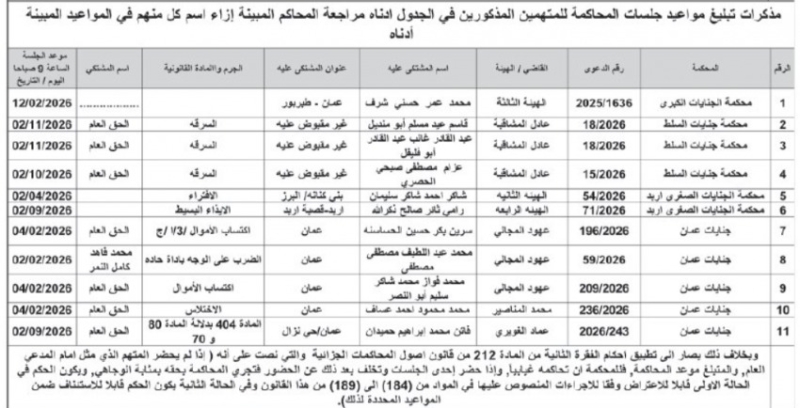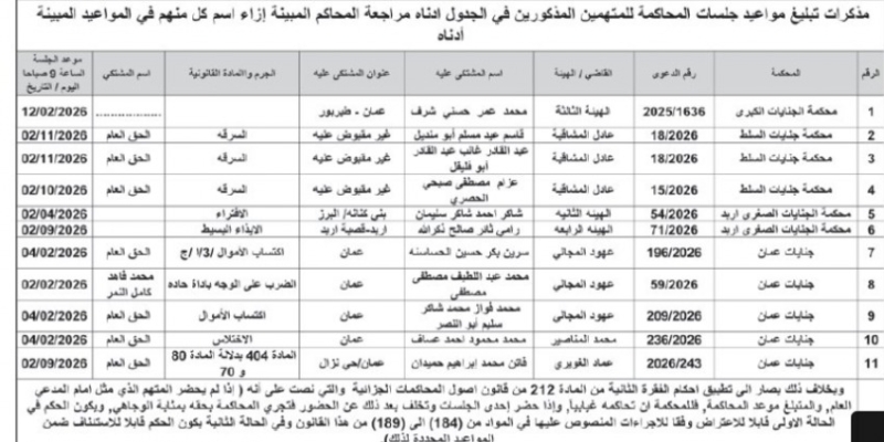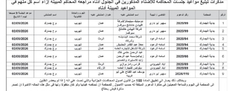 وكما صدرت مذكرات تبليغ، بمواعيد جلسات المحاكمة لمشتكى عليهم في المحاكم النظامية.