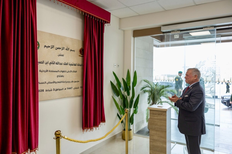 خبرني - افتتح جلالة الملك عبدﷲ الثاني، القائد الأعلى للقوات المسلحة، اليوم الثلاثاء، مجمع طب وجراحة الفم والأسنان العسكري التابع لمديرية الخدمات الطبية الملكية بمنطقة خلدا في عمان.