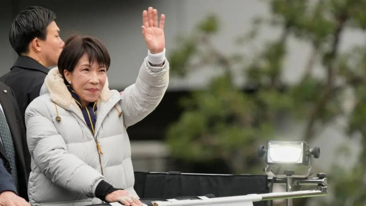 رئيسة الوزراء اليابانية ساناي تاكايشي تلوح لمؤيديها خلال تجمع انتخابي في طوكيو السبت