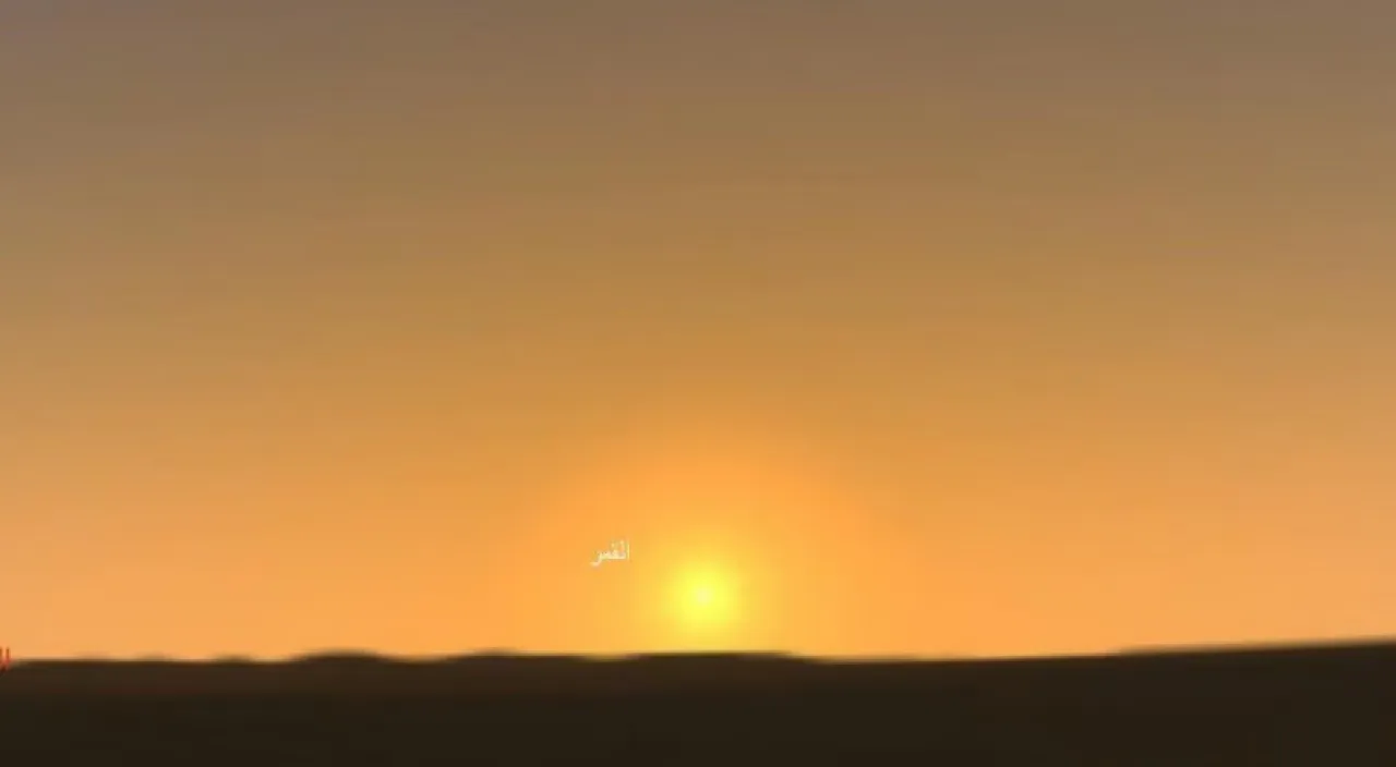 At the observatory's site in Houta Sudair, the sun will set at 5:52 PM, followed by the setting of the crescent at 5:54 PM.