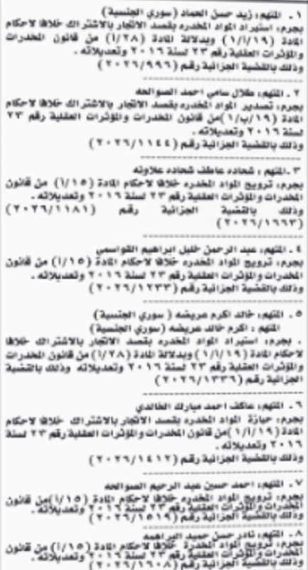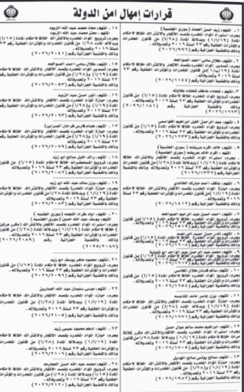 خبرني - أعلنت محكمة أمن الدولة اليوم الأربعاء إمهال عدد من المتهمين مدة 10 أيام لتسليم أنفسهم.