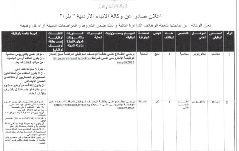 خبرني -  أعلنت عدد من الدوائر الحكومية، والمؤسسات التابعة للحكومة، عن رغبتها في ملء شواغر وظيفية لديها.