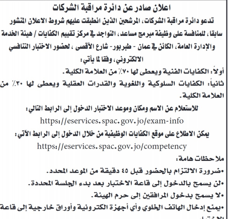 الدوائر الحكومية تعلن عن شواغر وظيفية ومواعيد الامتحانات التنافسية