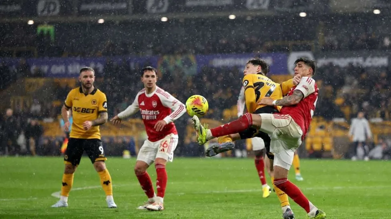 The Wolves responded with a first goal, scored by Hugo Bueno Lopez in the 61st minute, and then Arsenal's defender Ricardo Calafiori scored the second own goal for the hosts in the 94th minute, ending the match in a disappointing draw for Arsenal fans.