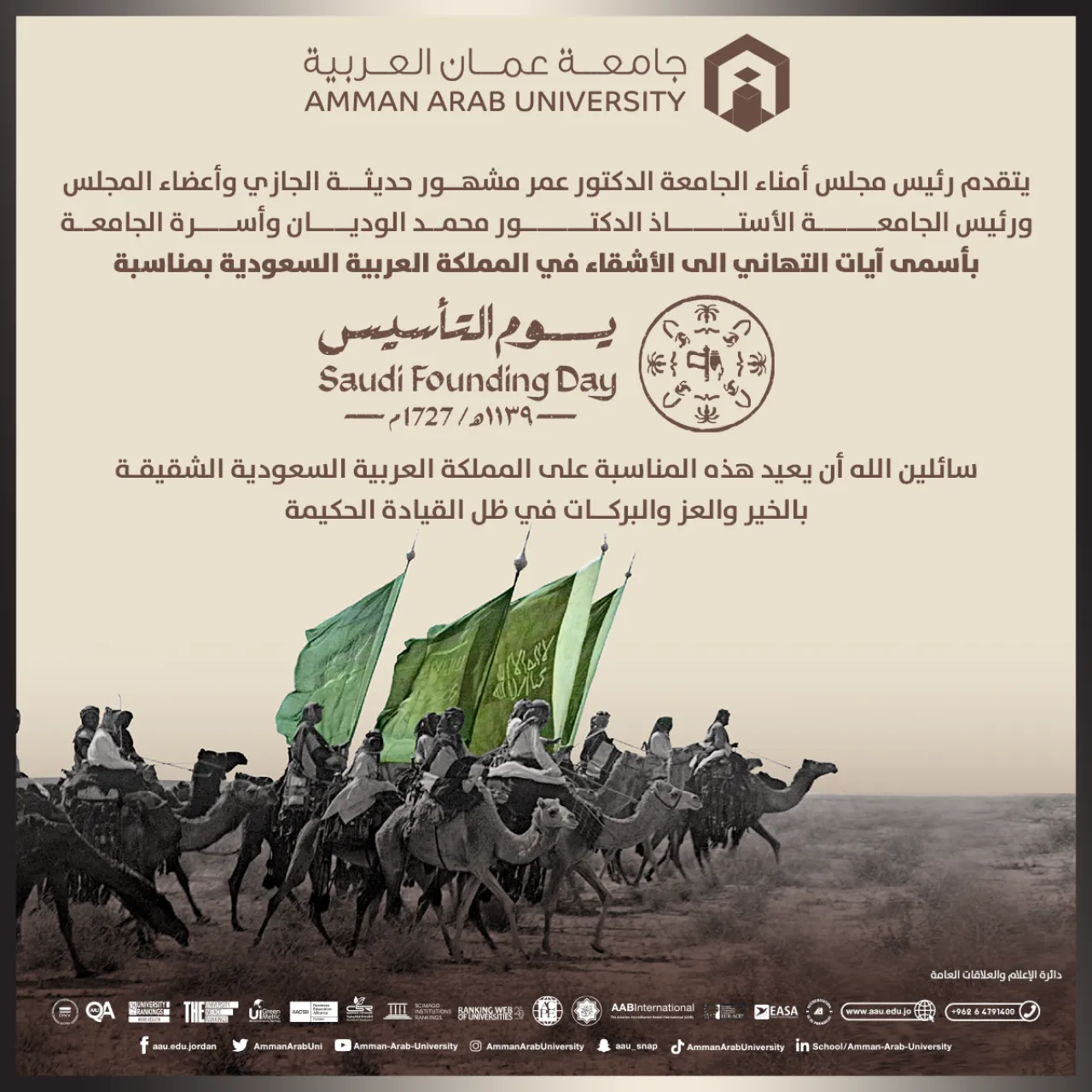 بأسمى آيات التهاني الى الأشقاء في المملكة العربية السعودية بمناسبة
