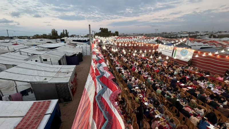خبرني  -  أقامت الهيئة الخيرية الأردنية الهاشمية وبالتعاون مع الحملة الأردنية أكبر إفطار جماعي لـ ٨٠٠ عائلة في مخيم البركة – مواصي خانيونس.