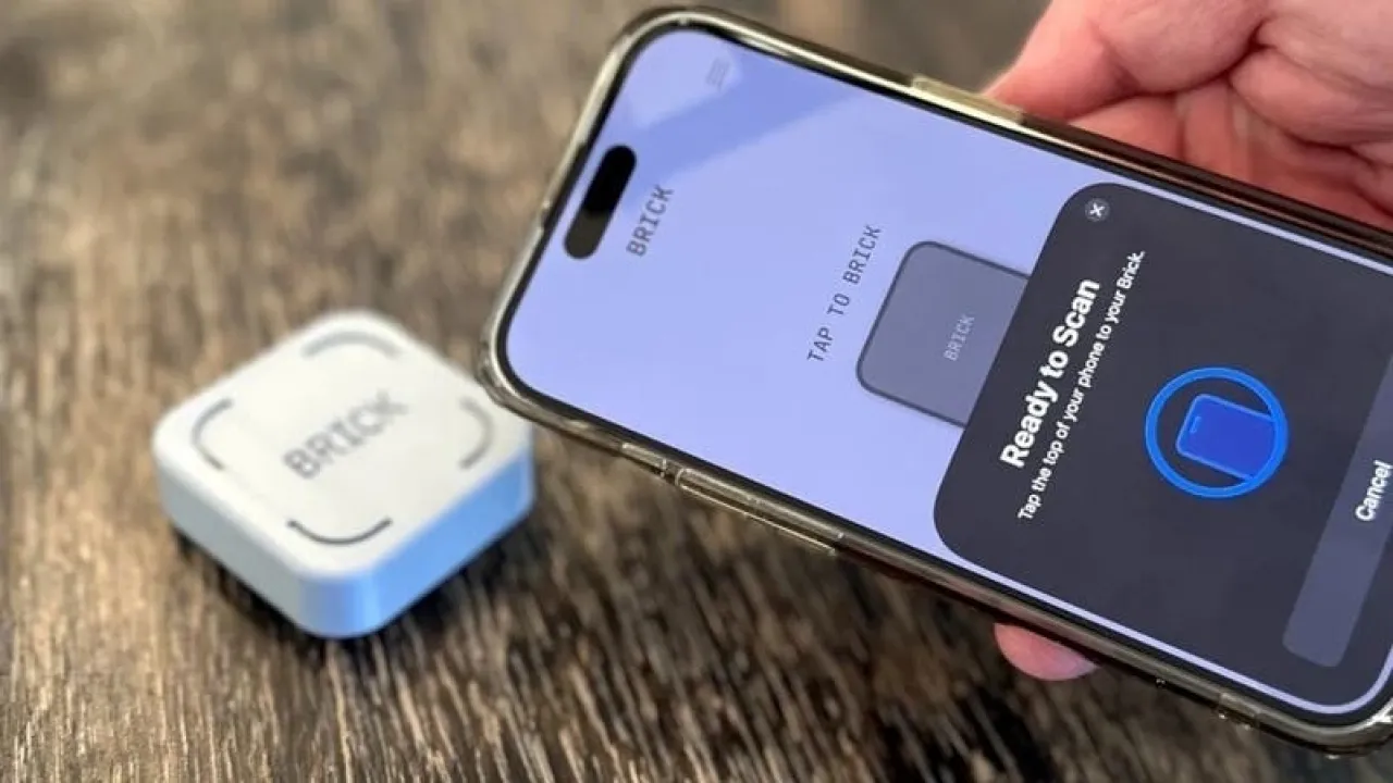 The "Brick" device is a small magnetic box that relies on NFC technology and works alongside a special app on the phone.