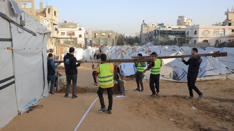 وتم تنفيذ هذه الاستجابة بالتنسيق مع الهيئة الخيرية الهاشمية والجمعية الشريكة من داخل قطاع غزة "جمعية فلسطين الغد للتنمية المجتمعية"، إذ تم تسليم الخيام للعائلات الأشد تضررًا ضمن القوائم المعتمدة. حيث عملت وزارة التربية والتعليم على توفير معلمين للغرف التعليمية.