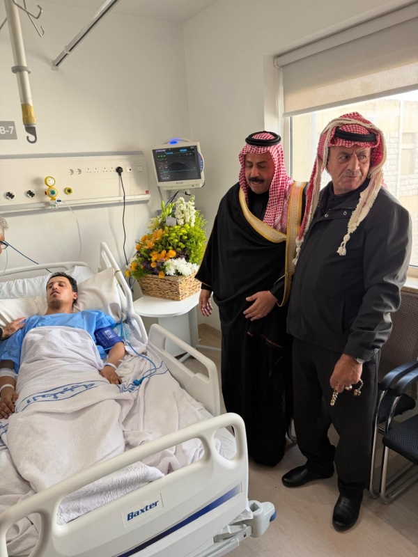 خبرني - قام سعادة الدكتور أيمن البداوي وسعادة المهندس جهاد عبووي، نواب حزب الاتحاد الوطني الأردني، بزيارة أحد المصابين من نشامى مديرية الأمن العام، والذي أُصيب أثناء مشاركته في عملية مداهمة استهدفت أوكار أحد تجار المخدرات.