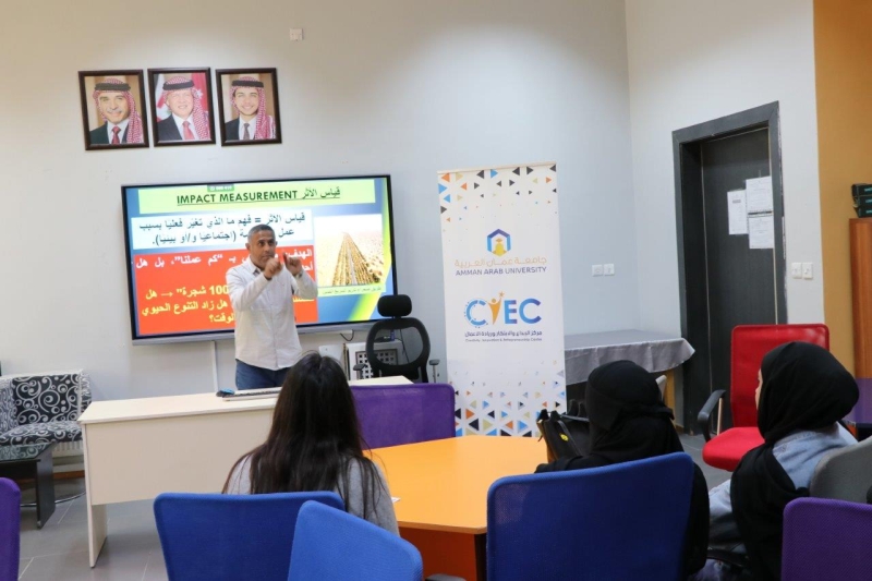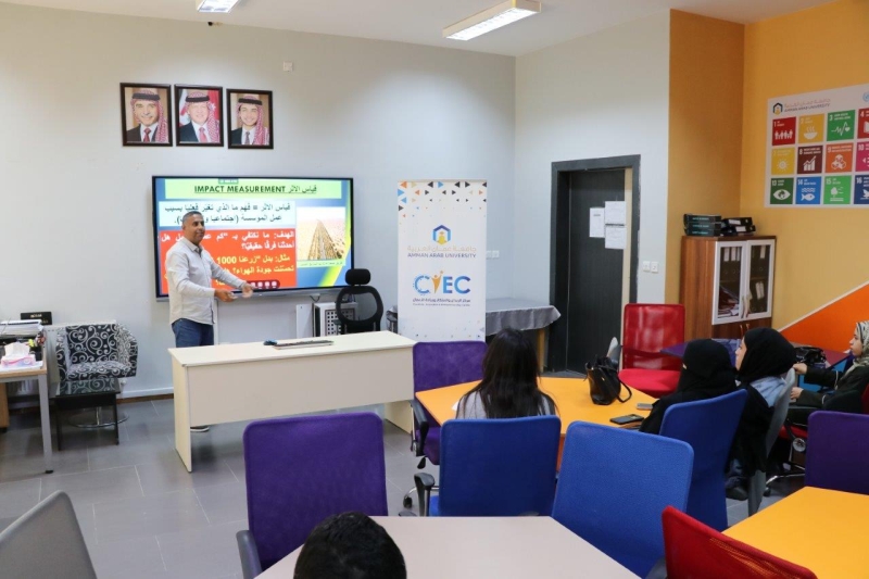 خبرني - في إطار سعي جامعة عمان العربية إلى تعزيز ثقافة الإبداع والابتكار وريادة الأعمال بين طلبتها، وتنمية مهاراتهم الريادية بما ينسجم مع متطلبات التنمية المستدامة وسوق العمل، عقد مركز الإبداع والابتكار وريادة الأعمال في الجامعة ورشة تدريبية متقدمة بعنوان "Impact by Design: Path to Sustainable Business"، قدمها الدكتور سامر عياصرة مدير مركز الابداع والابتكار وريادة الأعمال ، حيث استهدفت الورشة طلبة من أصحاب الأفكار الريادية والشركات الناشئة والمحتضنه بالمركز، بهدف تعريفهم بمفهوم الأثر الاجتماعي والبيئي وكيفية دمجه في نموذج العمل وقياسه وإدارته والتواصل عنه بشكل عملي ومبسط، بما يدعم استدامة المشاريع ويعزز المصداقية وثقة الشركاء والعملاء ويفتح الباب امام استقطاب الاستثمار وتمكين المشاركين من تطوير مشاريع ريادية مستدامة تساهم في خلق أثر إيجابي على المجتمع والبيئة، وتعزيز قدراتهم على إدارة الأعمال وفق مفاهيم الابتكار الاجتماعي والاستدامة.