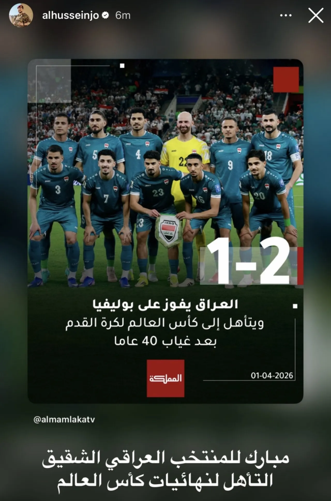 خبرني - هنأ الأمير الحسين بن عبد الله الثاني ولي العهد عبر انستغرام المنتخب العراقي الشقيق بالتأهل لبطولة كأس العالم.