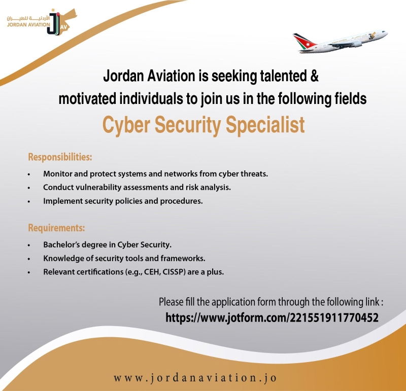 Jordan Aviation Airline is seeking talented and motivated individuals to join our team in the following fields:
