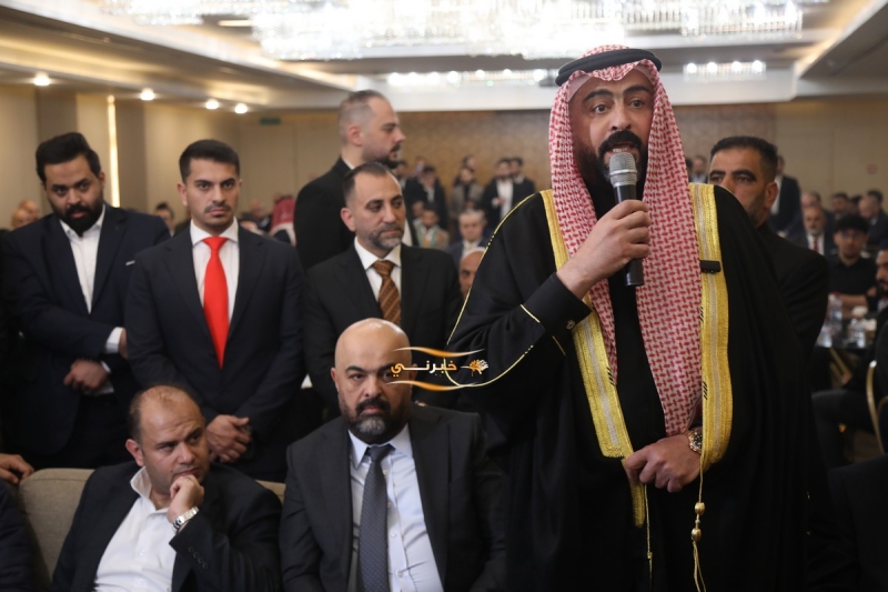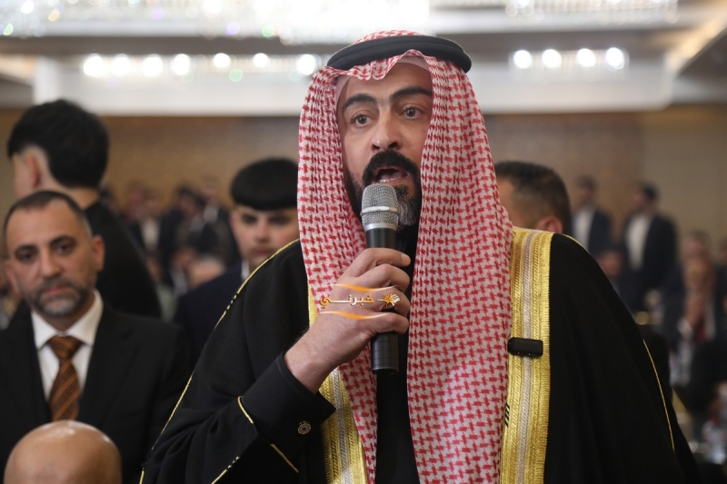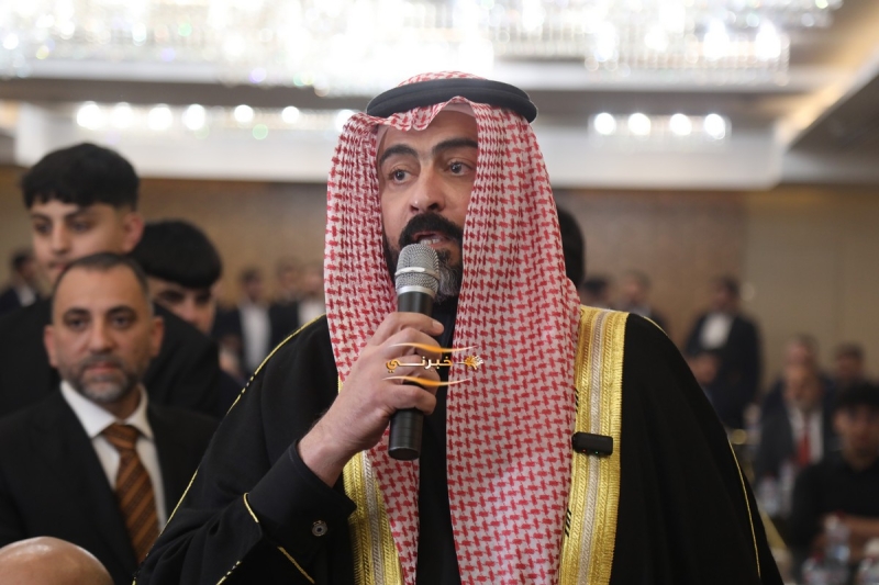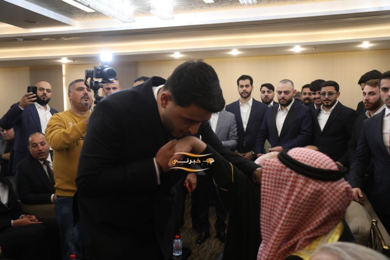 وتحدث باسم الجاهة الشيخ خالد العيطان، الذي طلب يد العروس، فيما أجاب طلب الجاهة بالقبول، وسط أجواء من الفرح والتبريكات من الحضور.