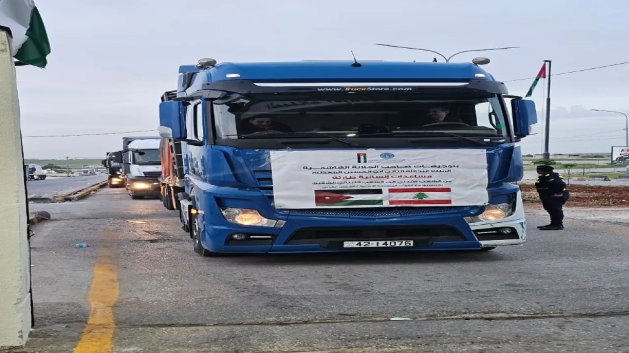 Khaberni - Under royal directives, Jordan sent a new humanitarian aid convoy to Lebanon on Thursday, as part of the ongoing response to the humanitarian situation in the sister republic.