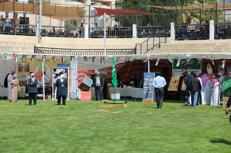 وأشار إلى أن تنظيم هذا المعرض في نهاية كل عام دراسي يحمل أبعاداً وطنية وقومية تؤكد عمق الروابط العربية، وأهمية تعزيز التواصل بين الطلبة من مختلف الدول، لافتاً إلى أن عدد الطلبة الوافدين في الجامعة بلغ نحو ثلاثة آلاف وخمسمائة طالب وطالبة من أكثر من عشرين دولة، بما يشكل ما نسبته 20% من إجمالي عدد طلبة الجامعة، وهو ما يعكس السمعة الأكاديمية المرموقة التي تتمتع بها الجامعة على المستويين المحلي والعربي.