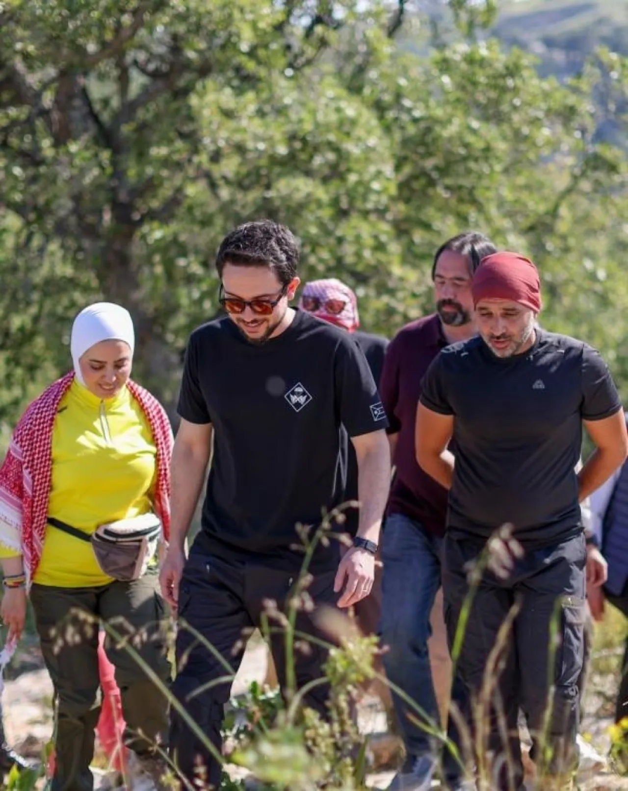Khaberni - His Highness Prince Hussein bin Abdullah II published today, Wednesday, photos from his participation in a nature trail at the Yarmouk Forest Reserve in Irbid Governorate.