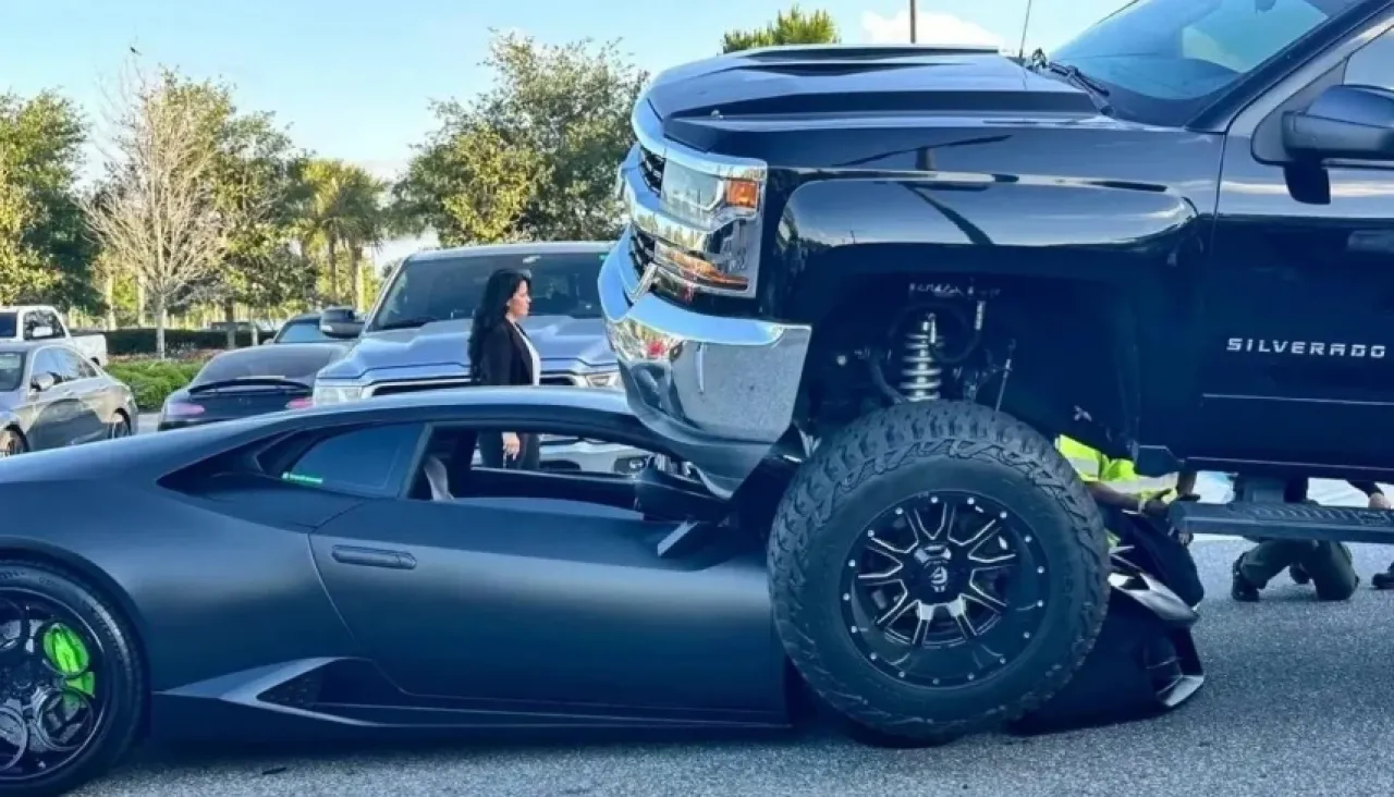 خبرني - دهست امرأة كانت تقود شاحنة ضخمة من طراز "شيفروليه سيلفرادو" سيارة فارهة من نوع "لامبورغيني هوراكان" تبلغ قيمتها 250 ألف جنيه إسترليني، في حادثة غريبة شهدتها إحدى مواقف السيارات في ولاية فلوريدا الأمريكية.