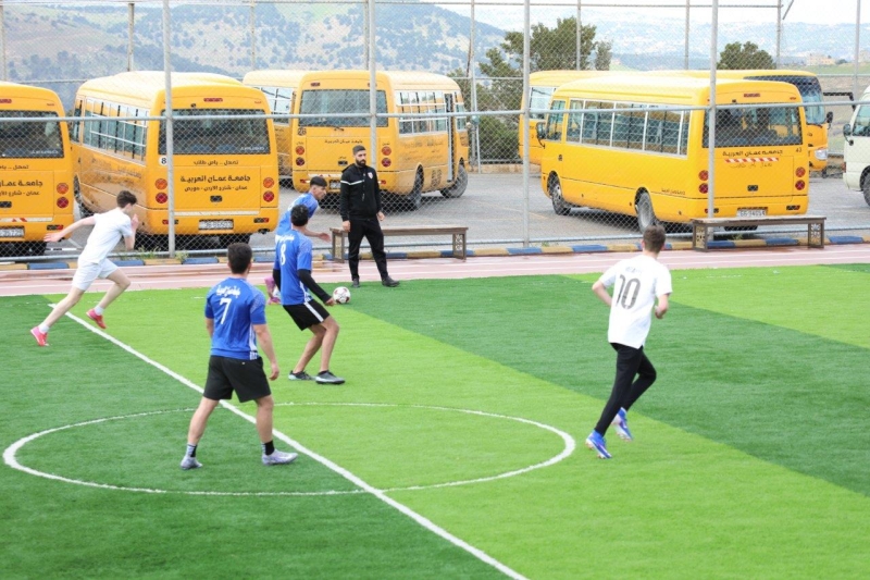 خبرني - أقامت جامعة عمان العربية على ملعبها مباراة ودية جمعت منتخب طلبة الجامعة مع طلبة مدارس العمرية / القسم الدولي، وذلك في أجواء رياضية مميزة عكست روح التنافس والتعاون البنّاء بين المؤسسات التعليمية، حيث افتتح اللقاء الدكتور محمد بن طريف عميد شؤون الطلبة في جامعة عمان العربية مندوبًا عن الأستاذ الدكتور محمد الوديان رئيس الجامعة، مؤكدًا أهمية هذه الفعاليات في تعزيز التواصل الرياضي والاجتماعي بين الطلبة، وترسيخ قيم العمل الجماعي والانتماء المؤسسي، وذلك بحضور الأستاذ محمد أبو زينة ممثلًا عن مدارس العمرية، في إطار تعزيز أواصر التعاون والتواصل بين الجانبين.