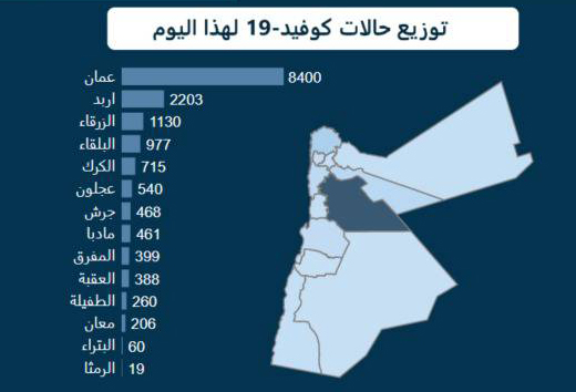 خبرني - سجلت العاصمة عمان ، رقما قياسيا بإصابات كورونا اليومية ، حيث سجلت 8400 إصابة في 24 ساعة ، من اصل 16226 إصابة سجلتها المملكة.