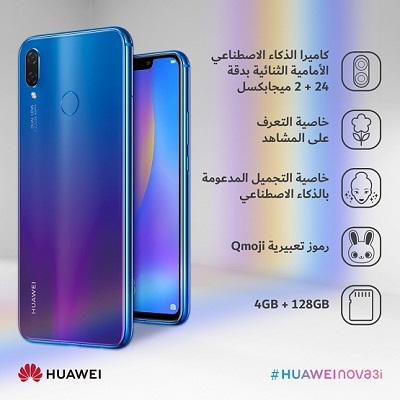 ومما يزيد من قدرة Huawei nova 3i على اقتحام المراتب المتقدمة، احتواؤه على مساحة تخزينية رئيسية تصل إلى 128 جيجابايت، و4 جيجابايت من الذاكرة العشوائية التي تدعم عمل المعالج عند الاستخدام المتعدد للتطبيقات، بجانب البطارية الكبيرة بكثافة 3340 مل أمبير، بخاصية الشحن السريع وبدرجة أمان مطورة.